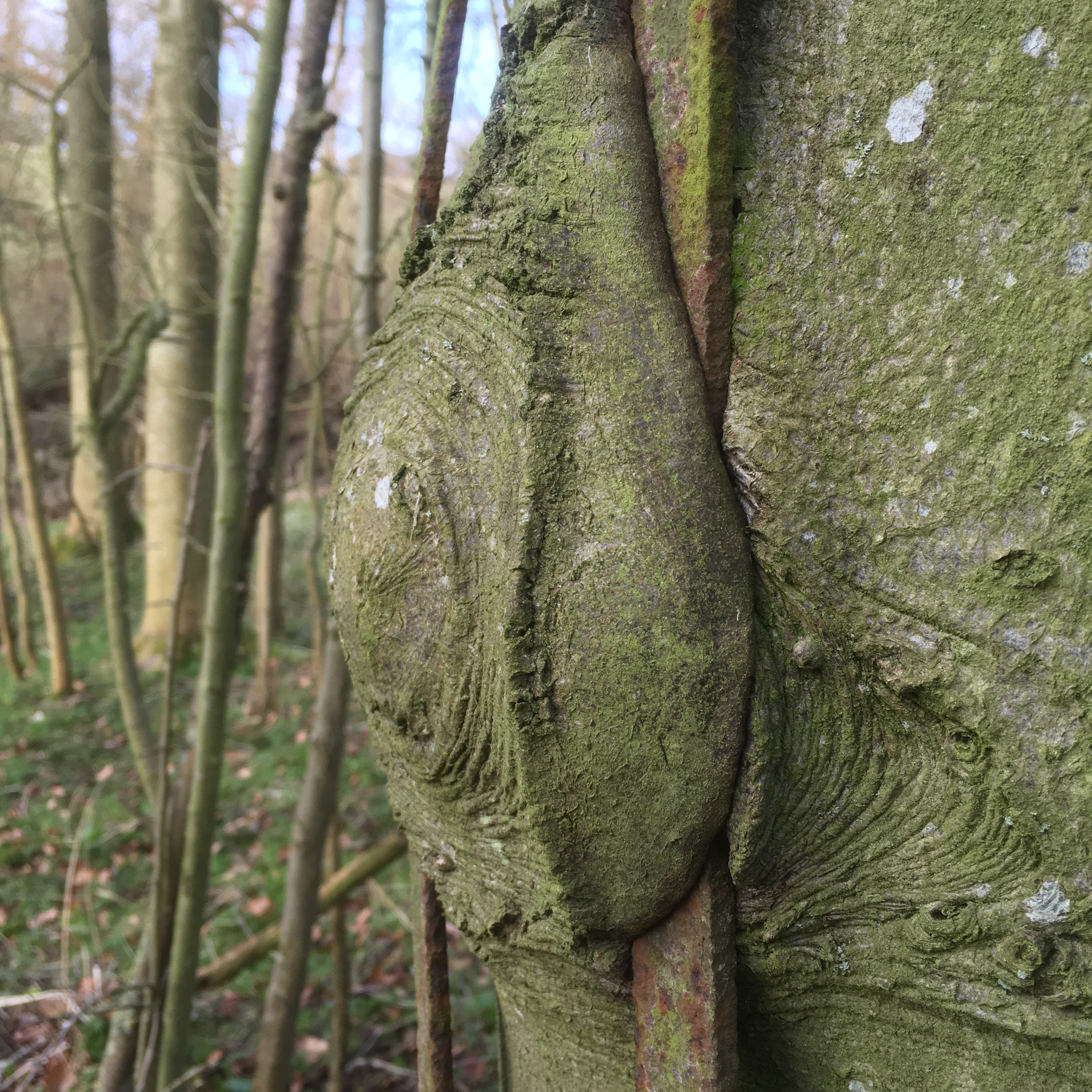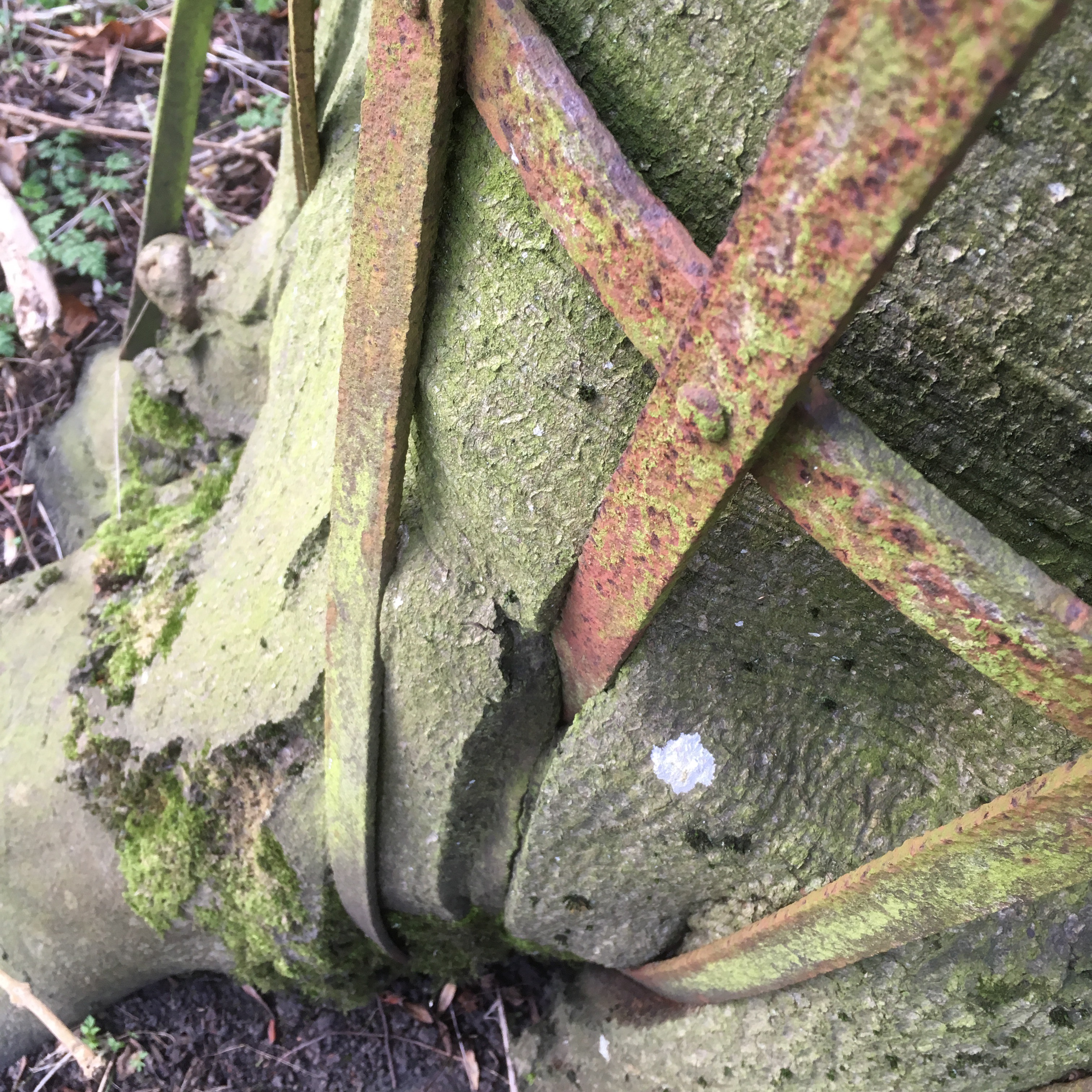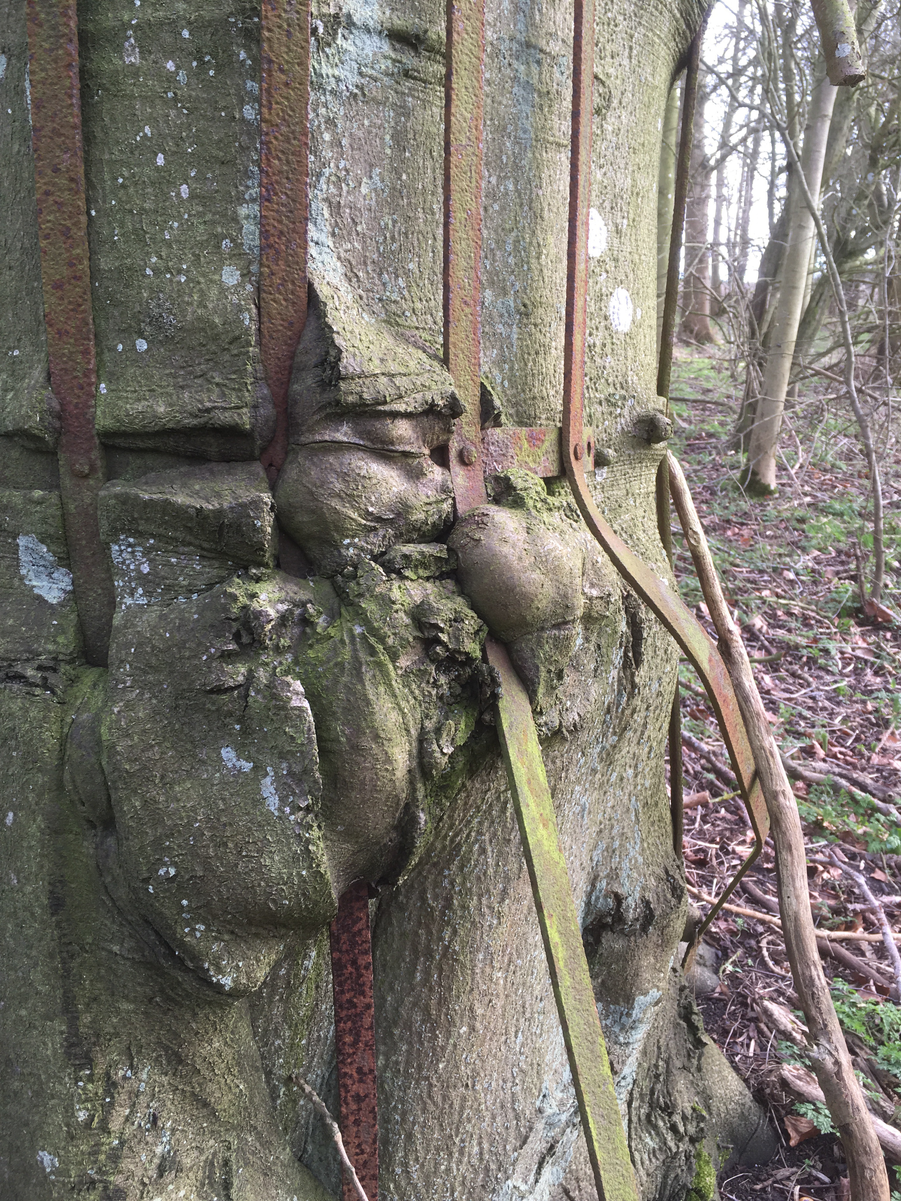 The planter of this tree, 100 years or so ago would have fixed the iron tree frame around the tree to guard against attack from deer. Maybe, after all this work the planter went off to fight in the Great War, or maybe the estate team were re-assigned. Whichever it was; little attention was paid to the tree beyond the assembly of that guard.