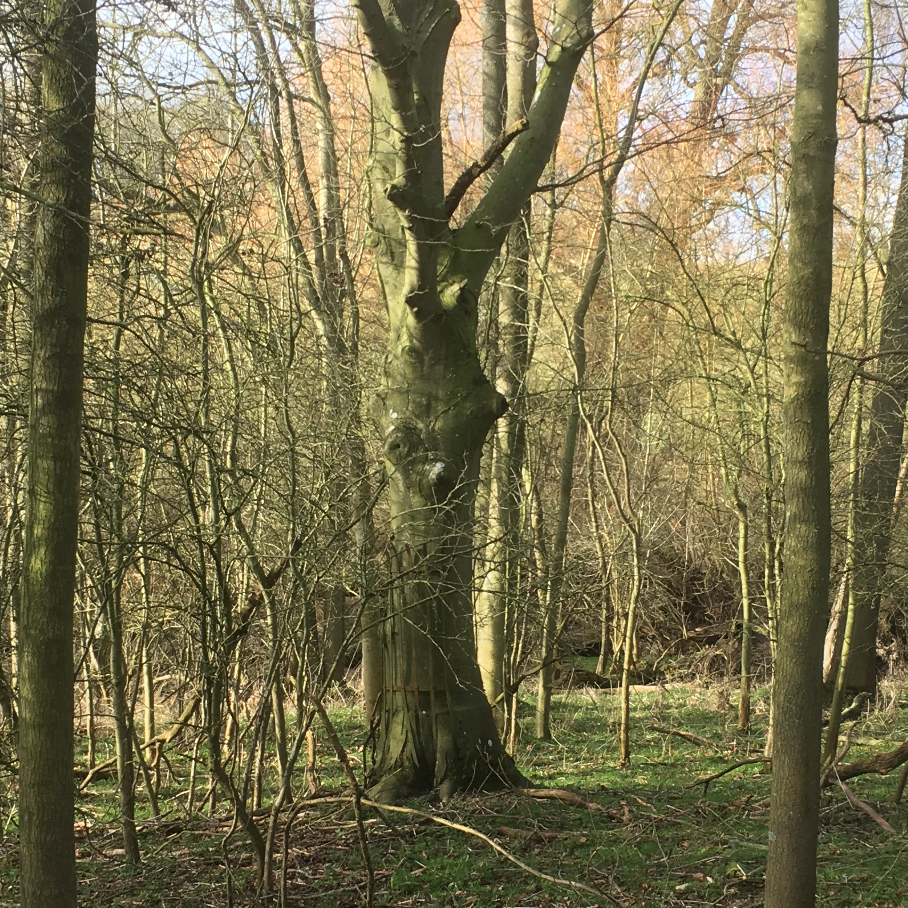 Possibly the fate of the tree was sealed when a fence was added around the perimeter of the area a few decades ago, effectively consigning the beech to a parcel of land that was subsequently planted as a wood – this would at least explain the many, many younger trees of lesser stature and quality that surround the beech.