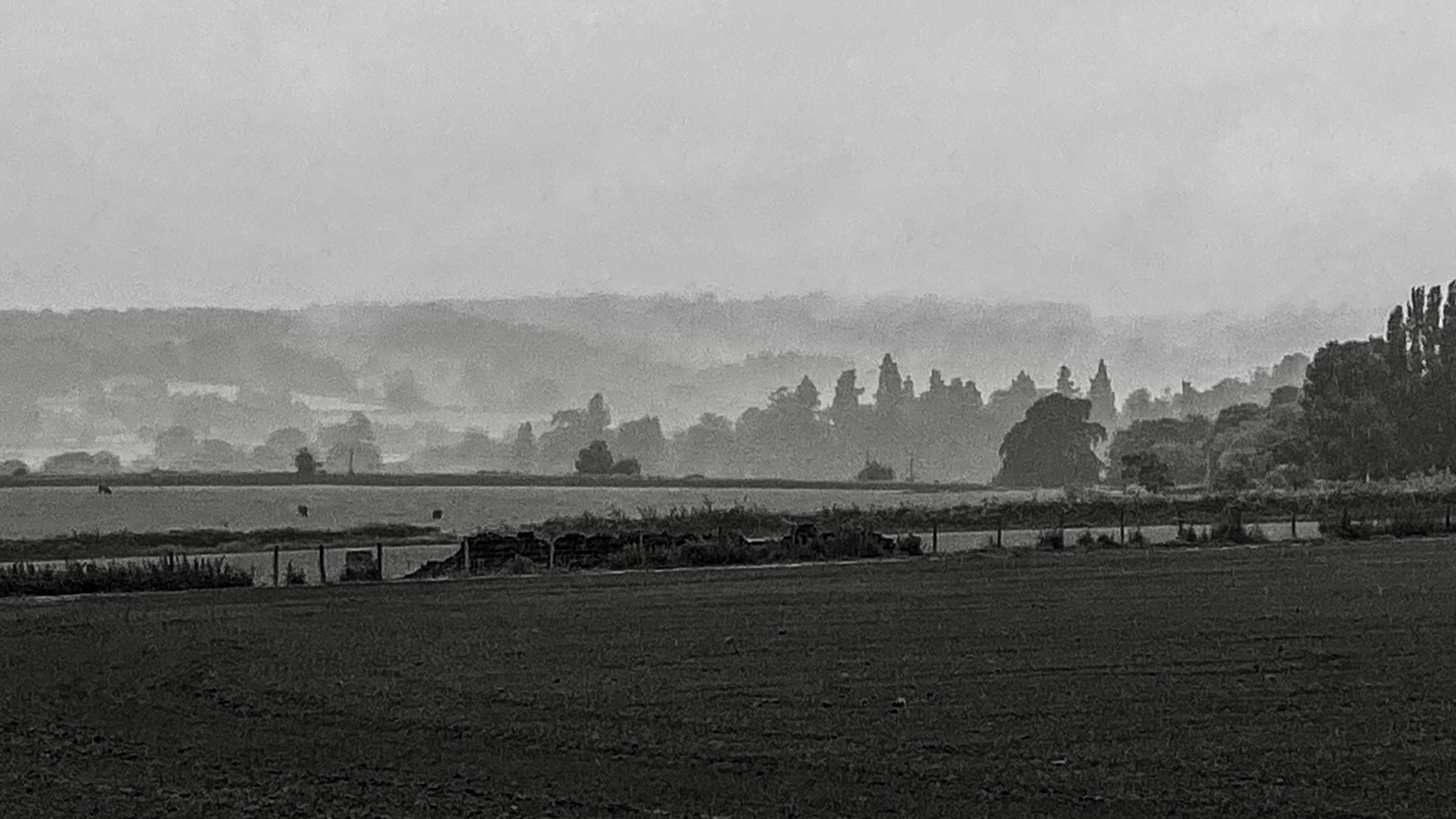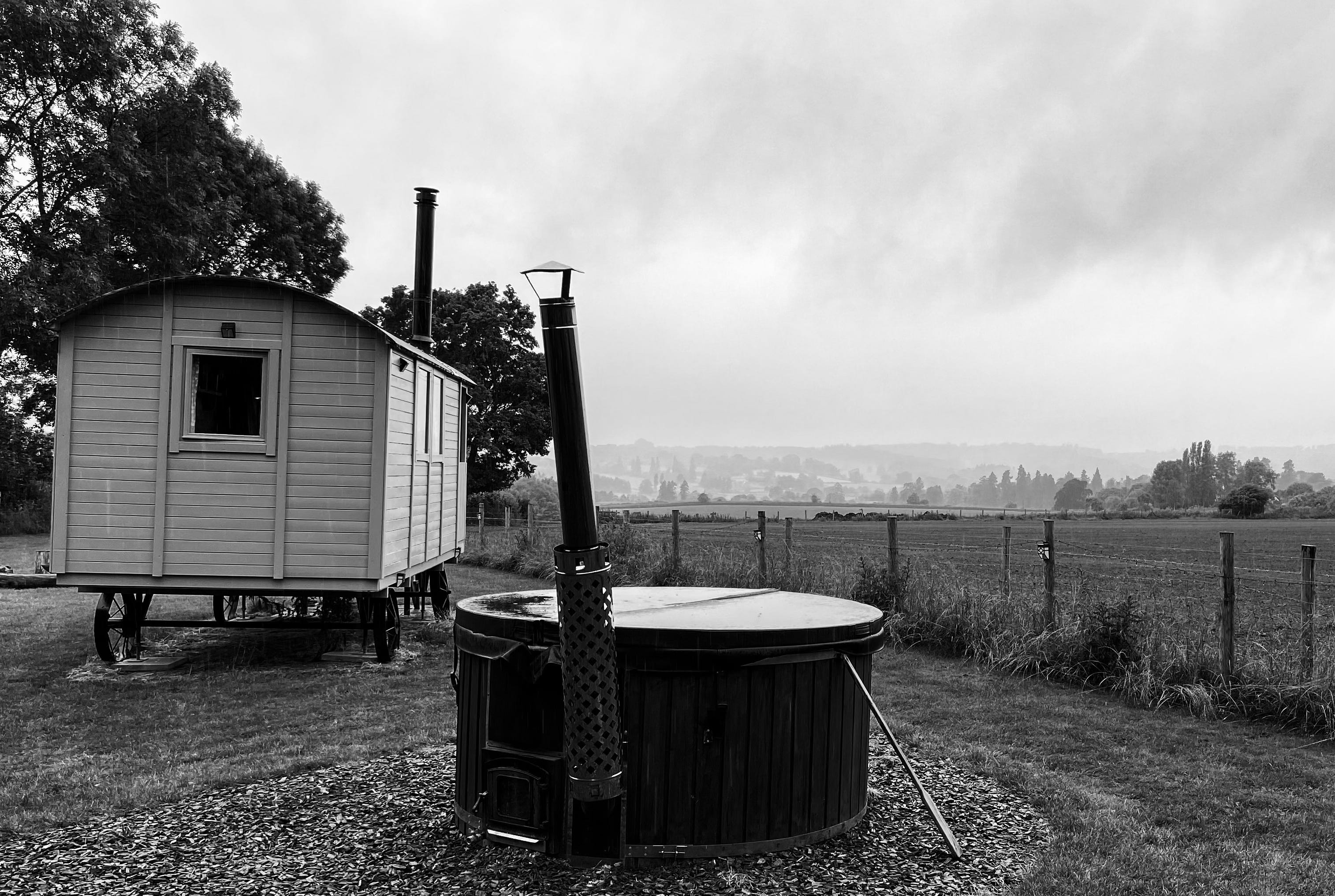 Where those beach front cabins might have owned panoramic seaside views to a faraway horizon, our hut enjoyed a pastoral scene across fields bordered with elderflower speckled hedges. In the distance and densely covered with trees, a wide-ranging hill bordered our view, the remote hill itself not so lofty but overflowing with intrigue, presenting itself magically as a misty, moisture-laden stage set worthy of any Shakespearean play.