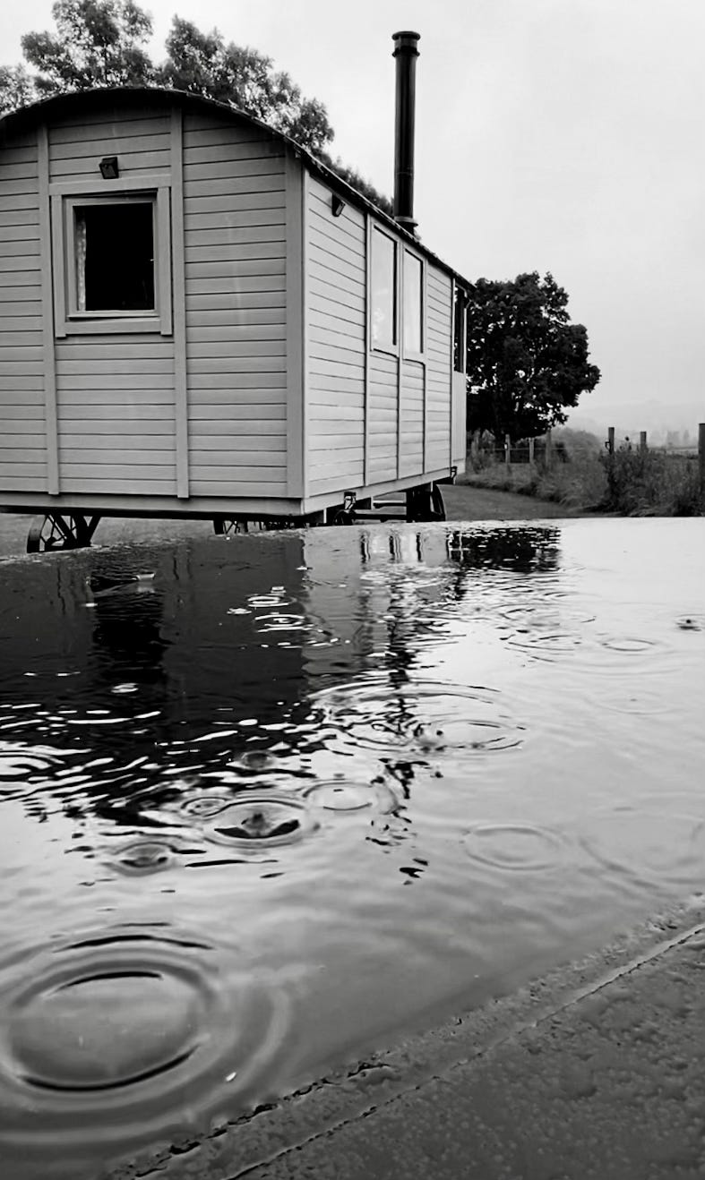 Not recalling having ever seen a genuine shepherd’s hut before, the look of ours reminded me of those beach front cabins once used by Victorian folk, the ones that could be wheeled right down into the water’s edge. Our hut was thankfully a little newer, maybe a year or two old, but equally as enchanting as any beachside cabin. The off-grid charm-filled box was just big enough for two, sat surprisingly high off the ground with a steel wheel in each corner, sported an arched blacktop roof with a tall slender chimney, and could be reached up a few steep steps to a narrow little balcony.