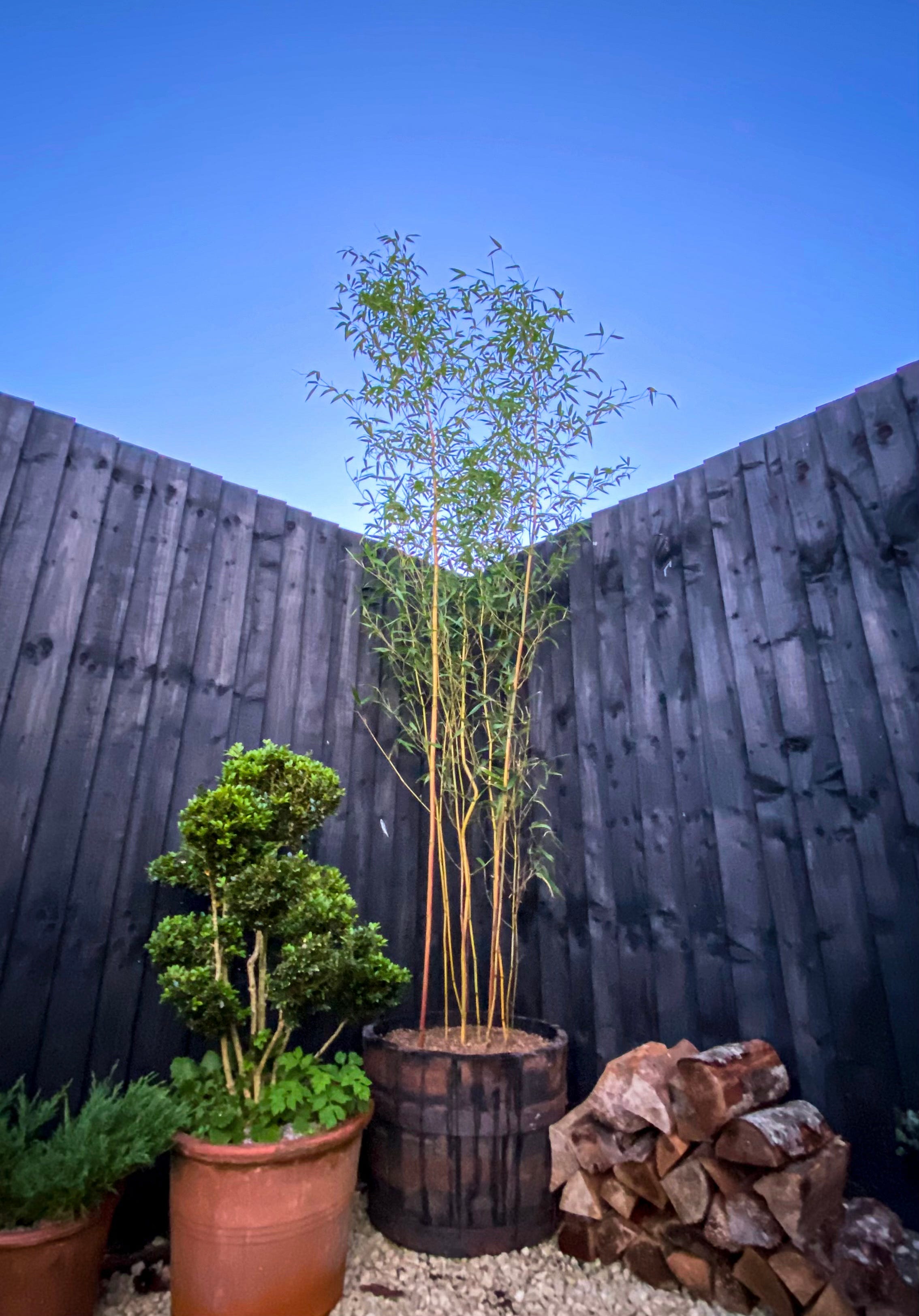 My pot is medium size, so rather modest compared to some, but is more than sufficient for the task in hand and will provide a home for my old bamboo for a good few seasons until I need to lift and divide its contents. Costing under thirty pounds the barrel’s structure is solid, not having dried out to the point where its wood shrinks and bands slip, it also has a good weight to it, which will help its stability given the lofty nature of my bamboo. As an additional precaution, I shall tie some of its top stems into the fence for a while until it has firmly established in its pot.