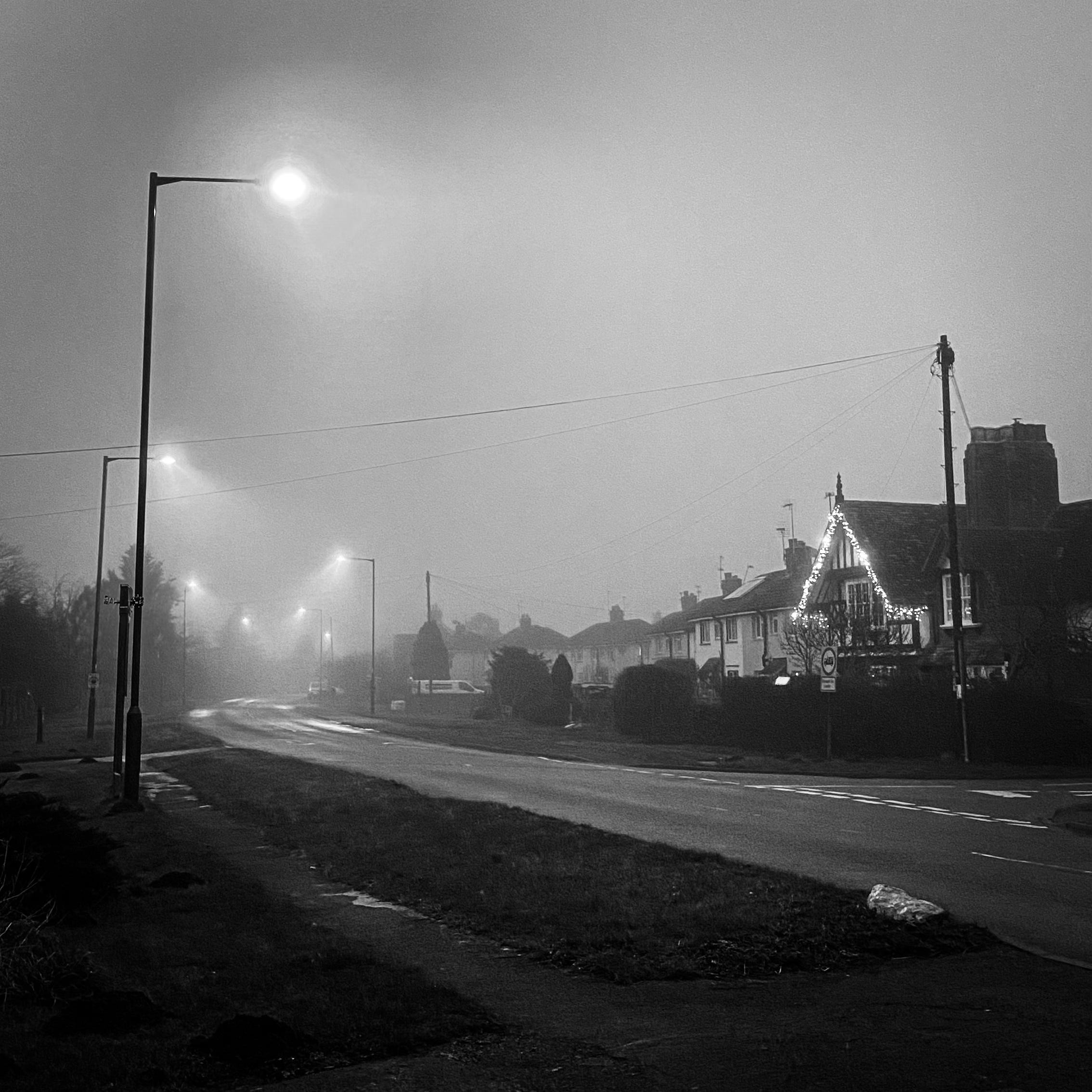 Less than ten minutes from leaving the house my hands had assumed a default position deep in the warmth of my jacket pockets, and I found myself heading in an easterly direction towards the edge of the village. Stepping on and off the path to let others pass, nodding and smiling but always continuing at pace, I kept on walking. All the time though I found myself becoming ever more aware of the atmosphere around me, for as the roads widened to reveal a greater swathe of sky, thick low cloud made its heavy presence felt. I became so intrigued by the afternoon air that I decided to extend the range I’d originally envisaged, and rather than turnabout or loop-back via other roads, continue my walk out beyond the edge of the village.